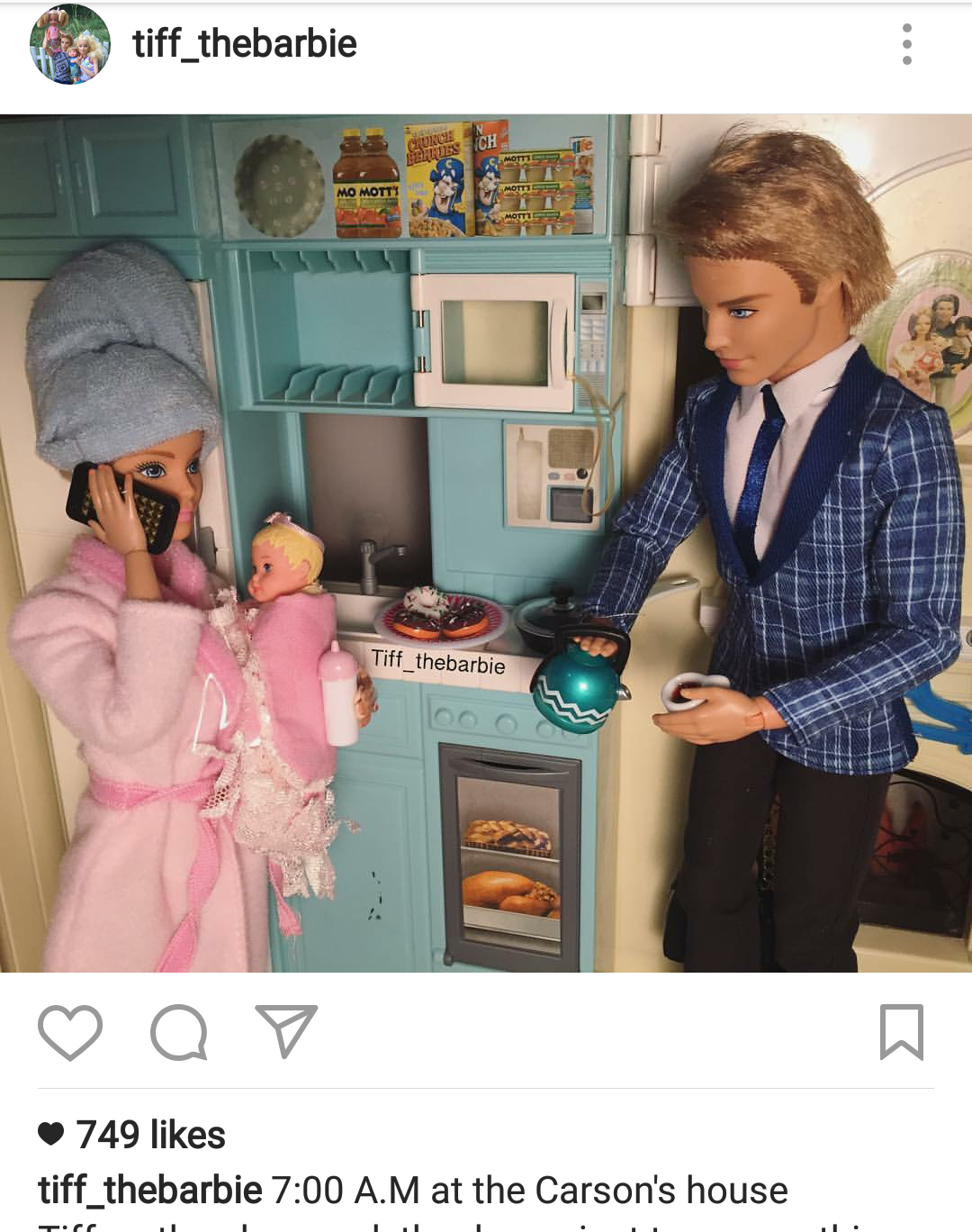 Home This Instagrammer Turned Barbie into a Millennial Mom and It’s Perfect By rtgretchenkunzJune 16, 2017 Search more like this baby-bumpfamily-photomotherhoodpregnancysocial-mediamillennialsatisfystarhangeverydaygetfeedpicturenumber Read next The Best Organic Clothes for Babies & Toddlers 45 Pumpkin Carving Designs That’ll Wow the Neighborhood Target’s Best Holiday Deals Start Sooner Than You Think This Larger Than Life Mister Rogers Monument is Exactly What the World Needs Want a Free Donut on Halloween? Here’s How to Get One from Krispy Kreme Countless kids spend their time playing pretend with Barbie and her friends and family, giving them complex social lives from the everyday average to adventurous and glam. But now, one special Barbie, Tiff, has become a millennial mom, and her Instagram feed perfectly captures the kind of social media photos you see today of modern moms. Take a look at how she’s captured the hearts of over 29,000 followers. Tiff_thebarbie does all those things photogenic women you see on Instagram do, from starring in just-so filtered nature shots pre-baby bump: photo: Tiff_thebarbie via Instagram To giddy sonogram announcements: photo: Tiff_thebarbie via Instagram To soft-focus new motherhood: photo: Tiff_thebarbie via Instagram Of course, a dreamy Ken posed shirtless with their new addition: photo: Tiff_thebarbie via Instagram And mornings got a little hectic: photo: Tiff_thebarbie via Instagram But Tiff kept doing her thing. Hanging with friends: photo: Tiff_thebarbie via Instagram Having some “me time”: photo: Tiff_thebarbie via Instagram Getting ready for baby number two: photo: Tiff_thebarbie via Instagram Satisfying those pregnancy cravings: photo: Tiff_thebarbie via Instagram And building a picture-perfect family: photo: Tiff_thebarbie via Instagram Whew! Life is an adventure, and it looks like Tiff and company have lots more to come! What do you think of Tiff’s millennial life? Tell us your thoughts in the comments below!
