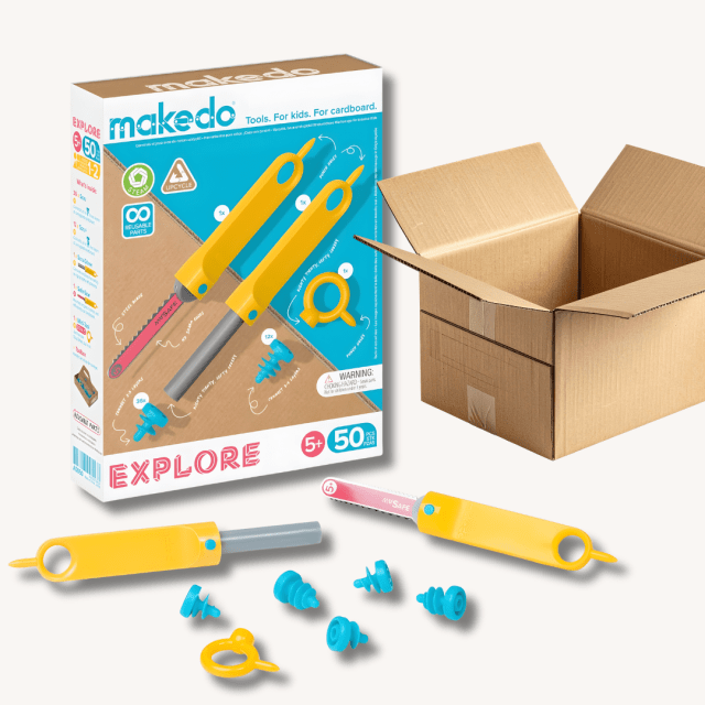 Let them put all those leftover cardboard boxes to good (and imaginative) use with these kid-friendly tools made specifically to make cardboard magic.