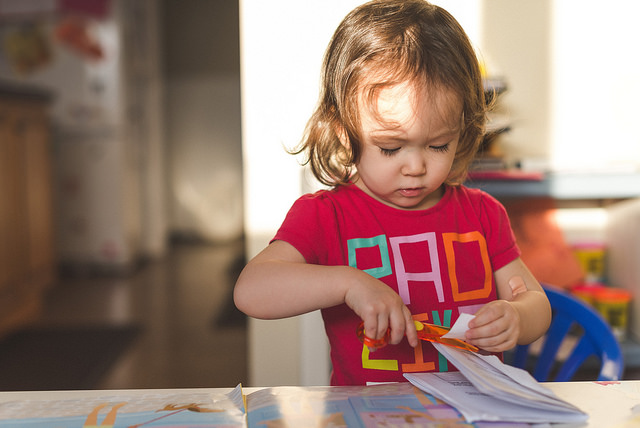 Those beautiful bits of scraps are perfect for a scrapbook! Help your little piece together the bitty bits to make a background or jazz up an otherwise boring page. This is a great on-going activity!